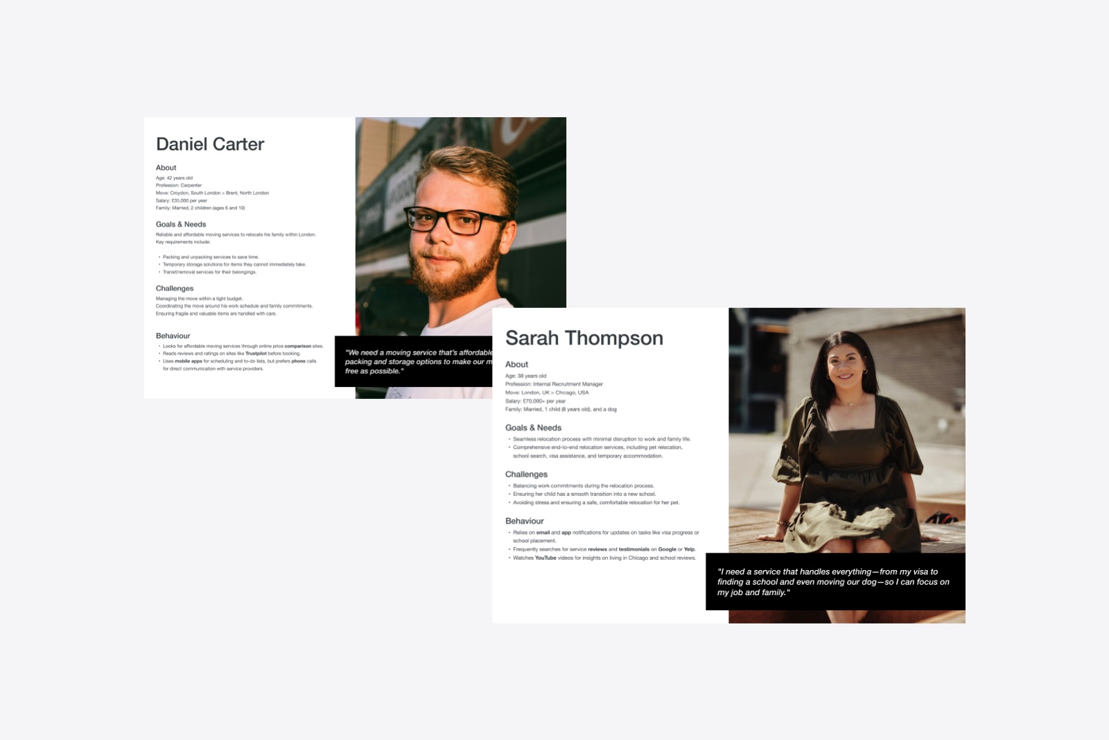 Alongside marketing and sales, we generated a series of personas to match different user-types and help ensure our proposals answerered needs and wants.